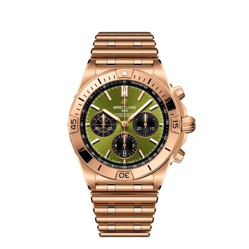 Tags: Breitling, Chronomat B01 42, Giannis Antetokounmpo, RB01344A1L1R1, limited edition, red gold case, green dial, Caliber B01, chronograph, luxury watch, high quality, replica, cheap sale, AAA