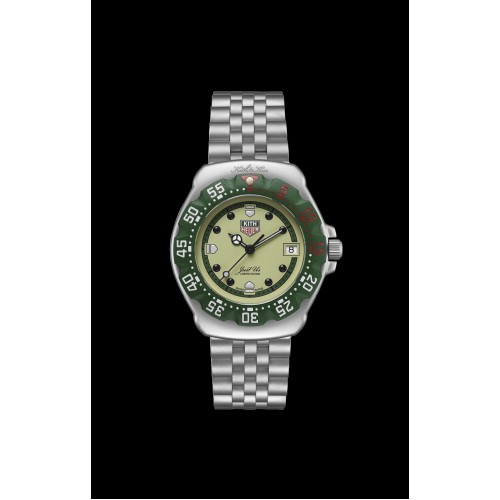 Tags: TAG Heuer, Formula 1, Kith Paris, WA121N.BA0023, limited edition, luxury watch, stainless steel, green arnite bezel, eggshell dial, quartz movement, 2024, replica, cheap, sale, china, high quality, AAA
